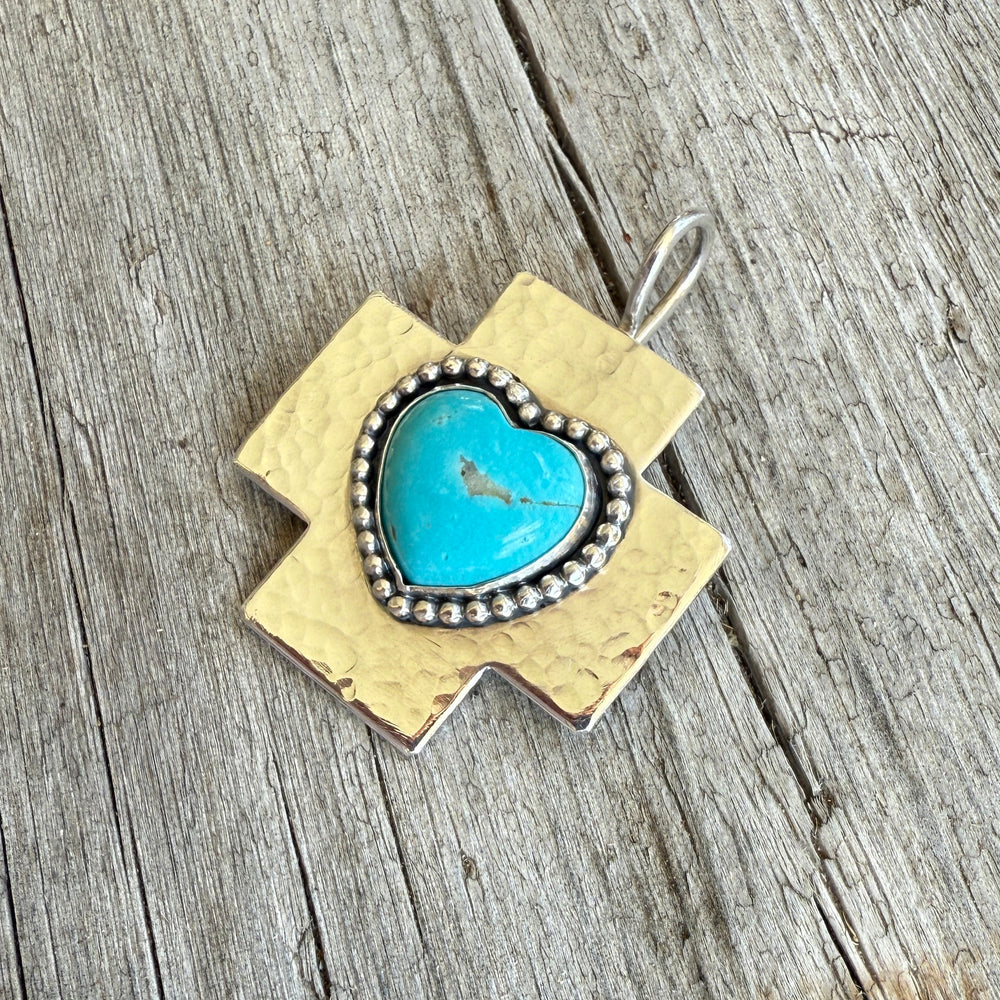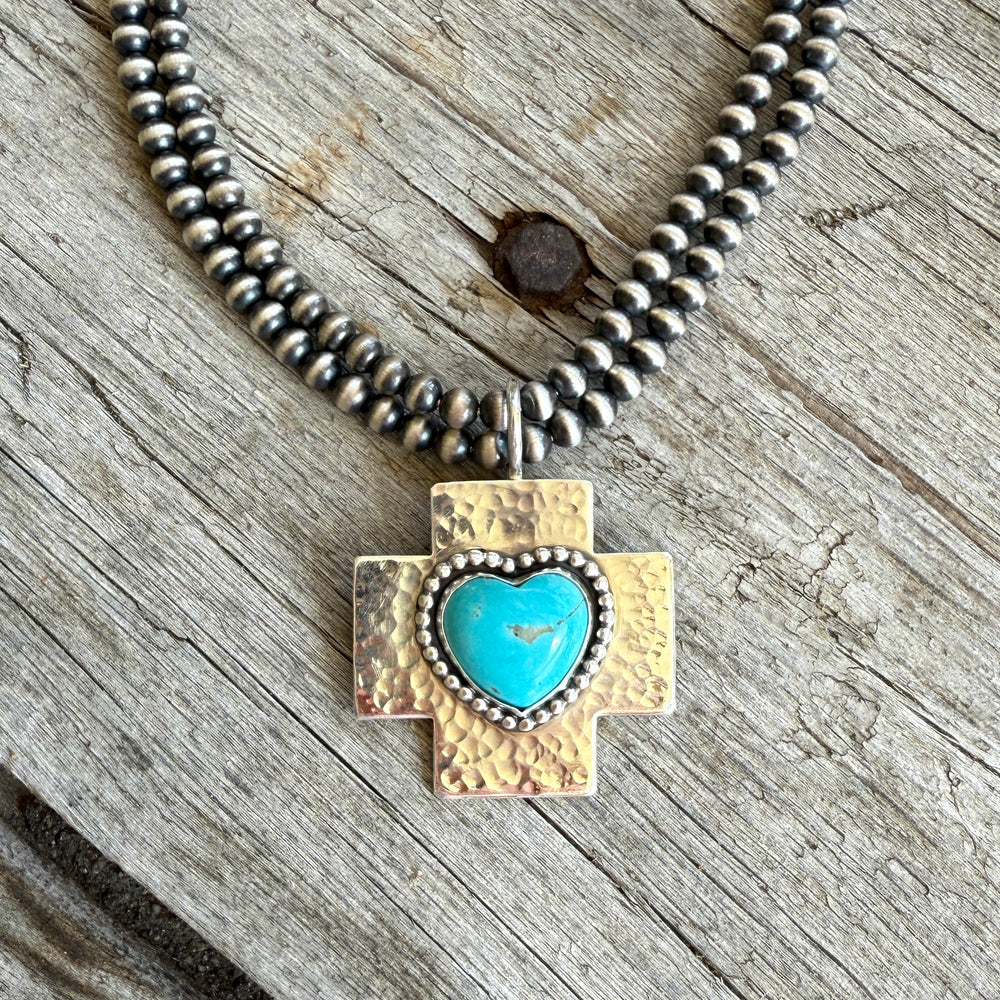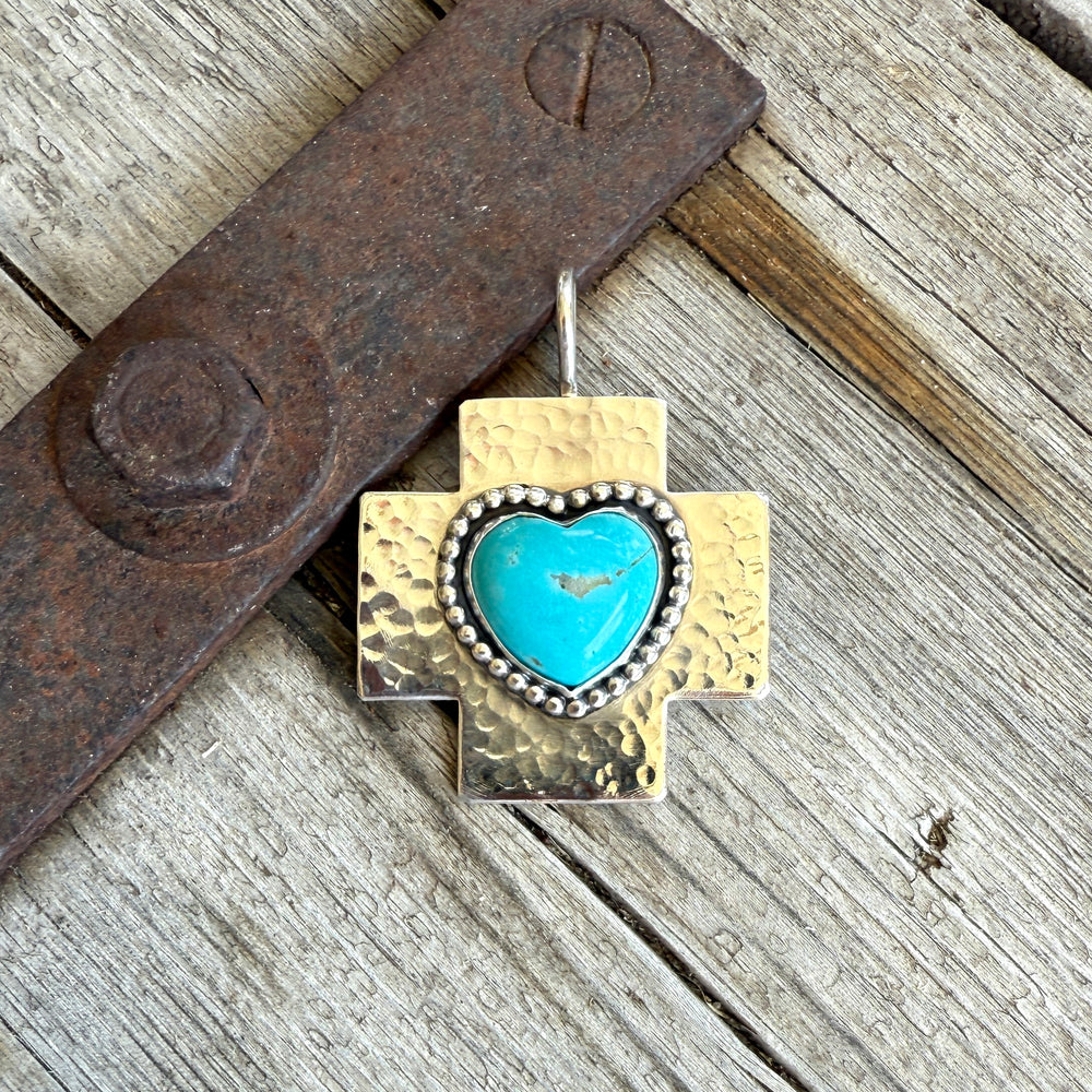 Sterling silver Cross with Kingman Turquoise Heart Pendant
